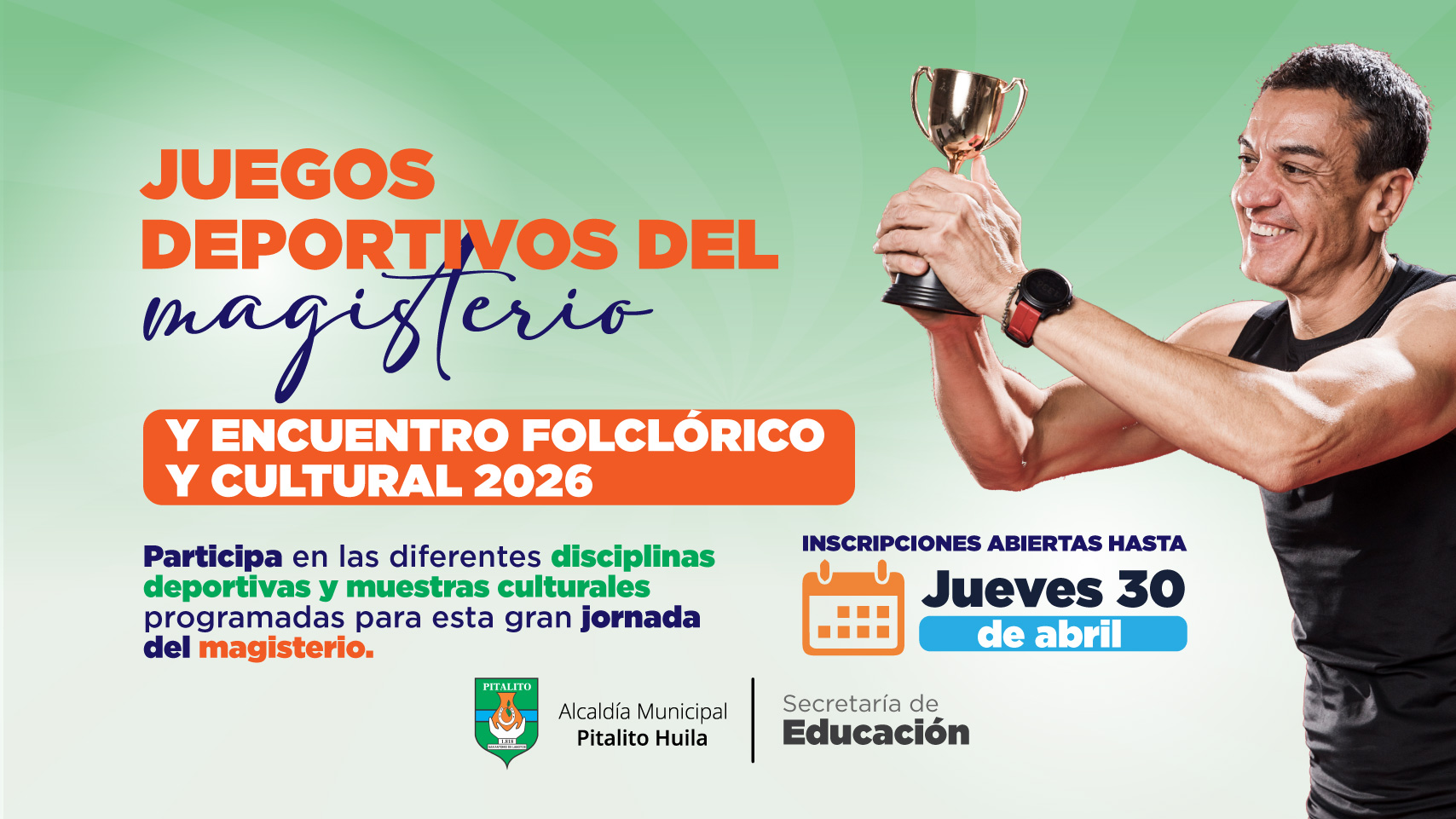 La Secretaría de Educación del municipio de Pitalito se permite dar a conocer aspectos relacionados con respecto a la fase municipal en cuanto a los Juegos Deportivos (JDM), así como para el desarrollo del Encuentro Folclórico y Cultural del Magisterio (EFCM) de conformidad con la Norma General